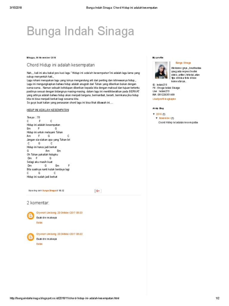Bunga Indah Sinaga Chord Hidup Ini Adalah Kesempatan