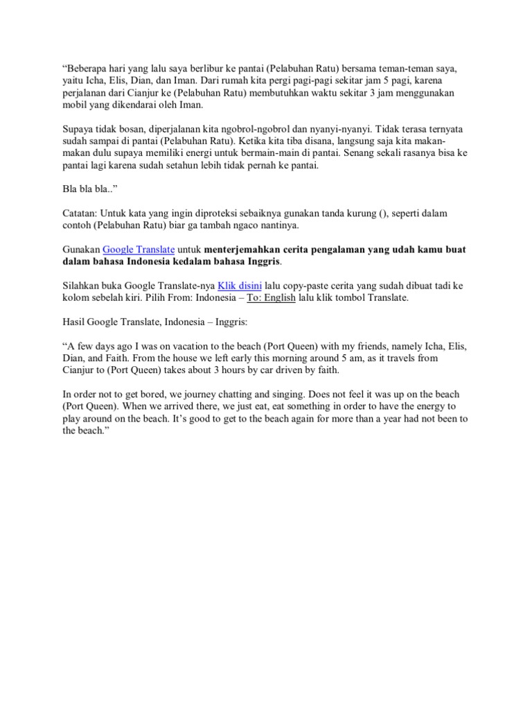 5 Contoh Recount Text tentang Liburan ke Pantai Bersama Keluarga Beserta Artinya. 1 pada sebuah pertanyaan Buatlah pengalaman pribadi menggunakan bahasa sunda tentang liburan ke pantai minimal 1 foliosebisanya juga gpp tolong bantu ya Tolonggg. Contoh Cerita Pengalaman Pribadi Dalam Bahasa Inggris Sekolahbahasainggris- Menuliskan cerita pengalaman pribadi bukanlah hal yang begitu sulit.