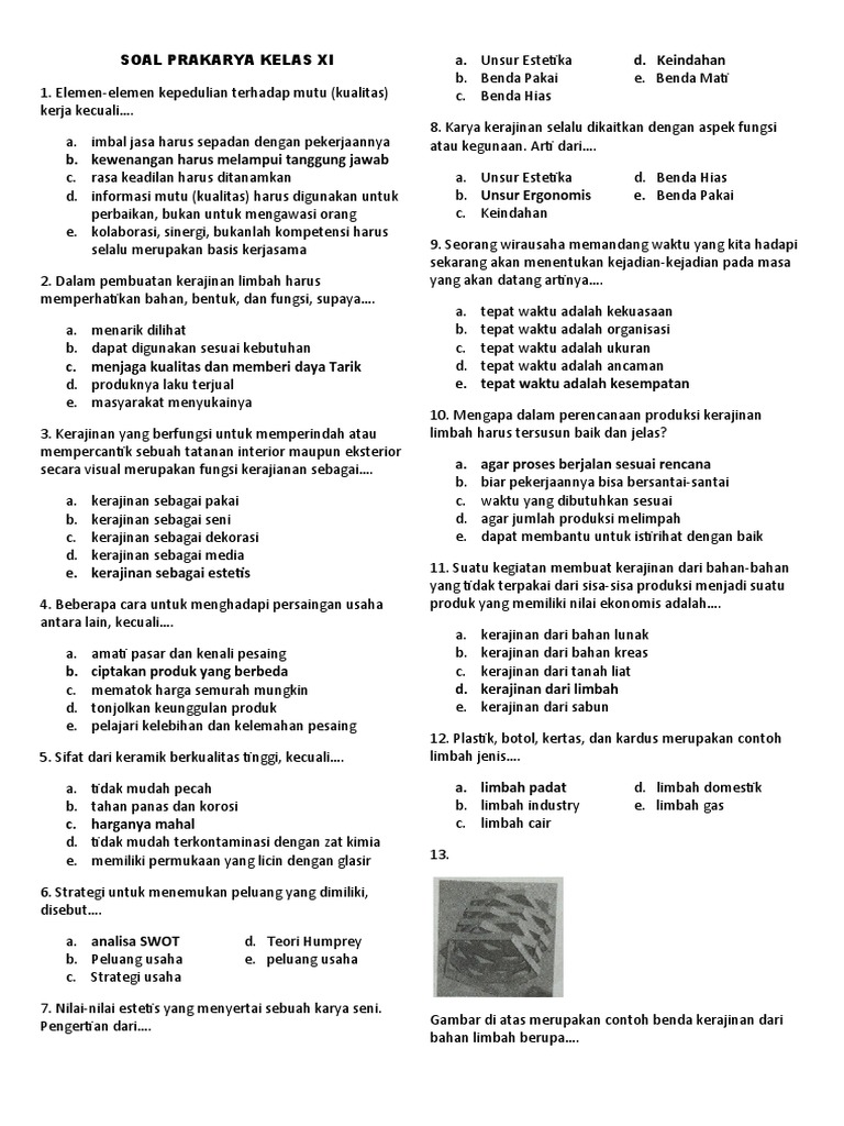 Kunci Jawaban Soal Usp Usbn Prakarya Kewirausahaaan Sma Kurikulum 2013 Halaman 1 40 Laluahmad Com